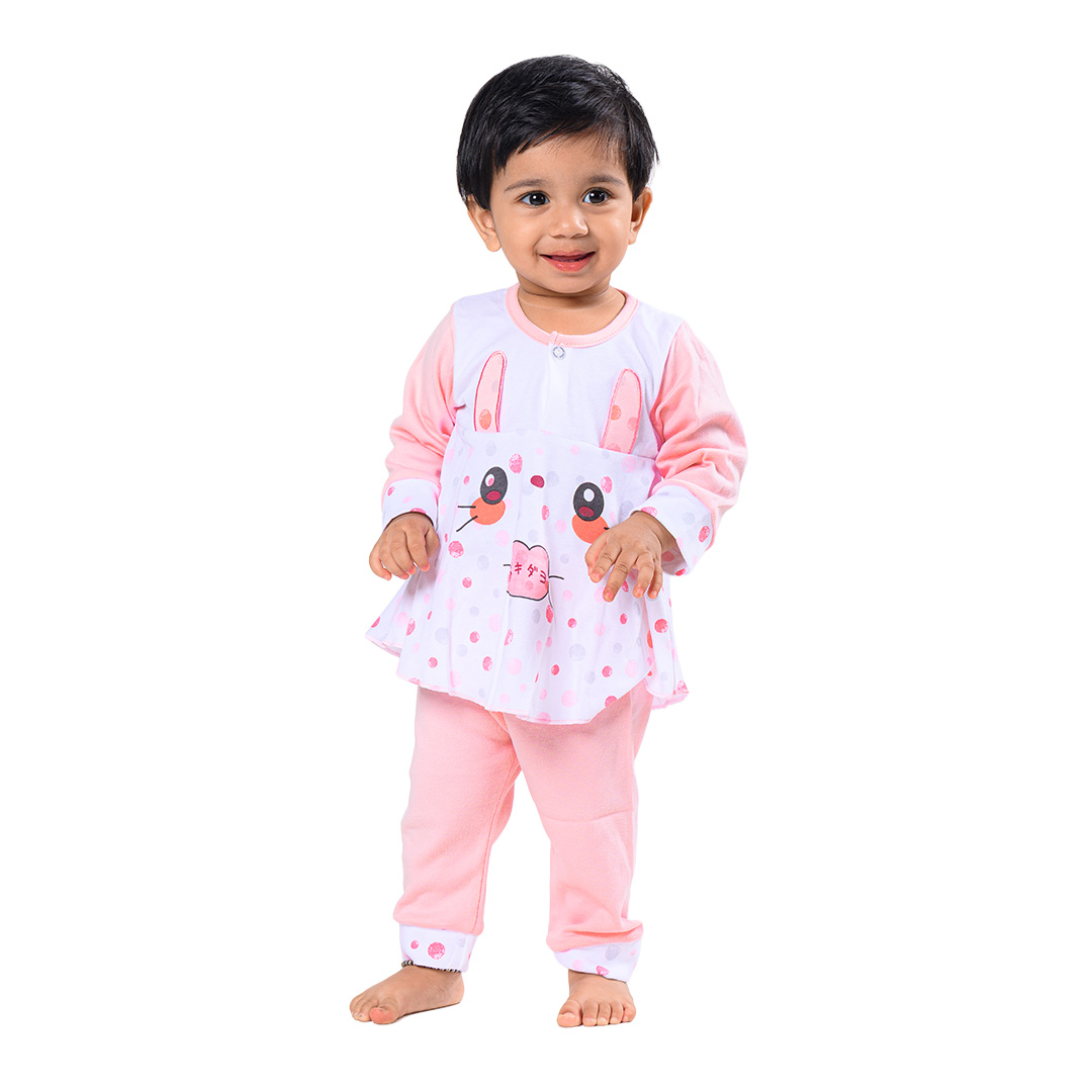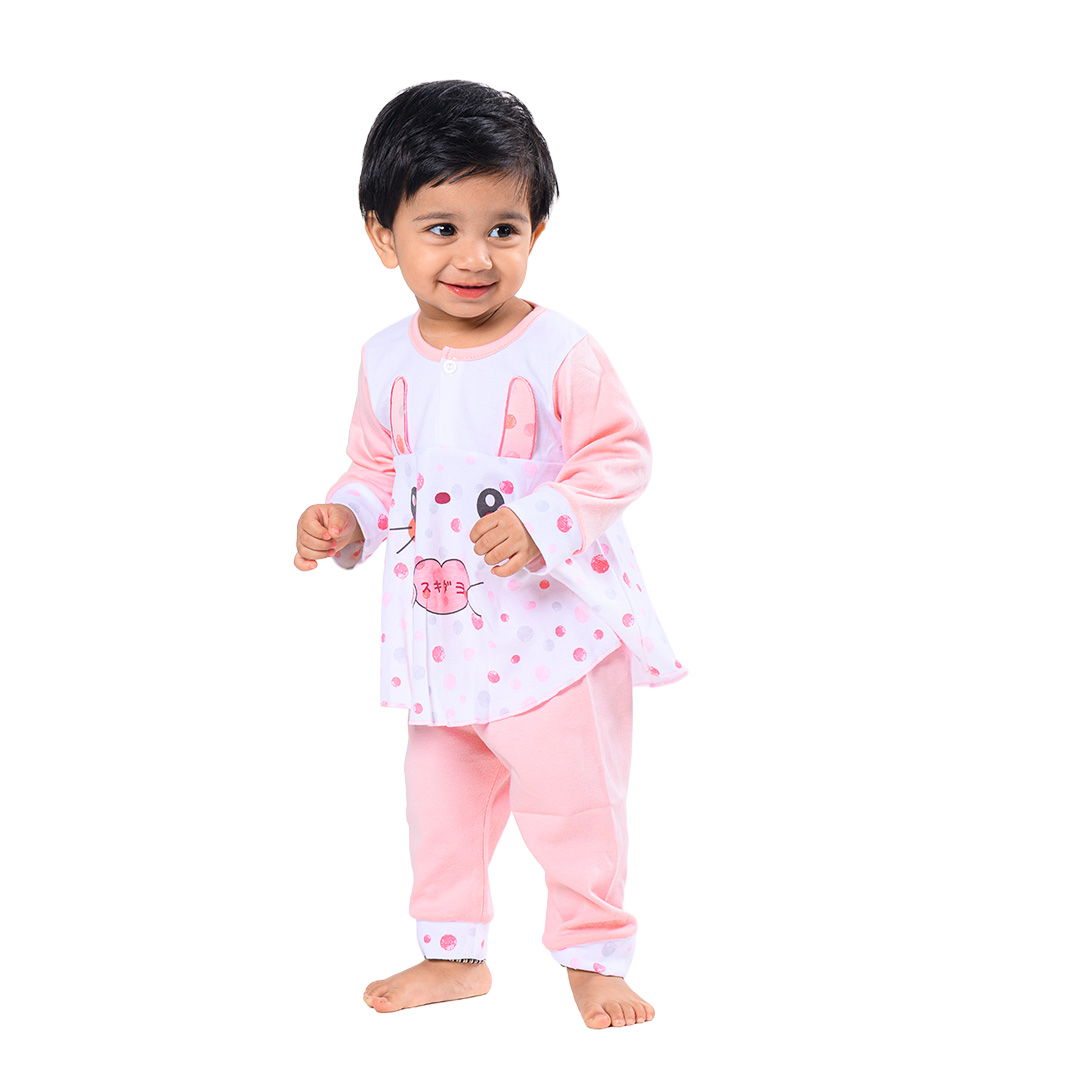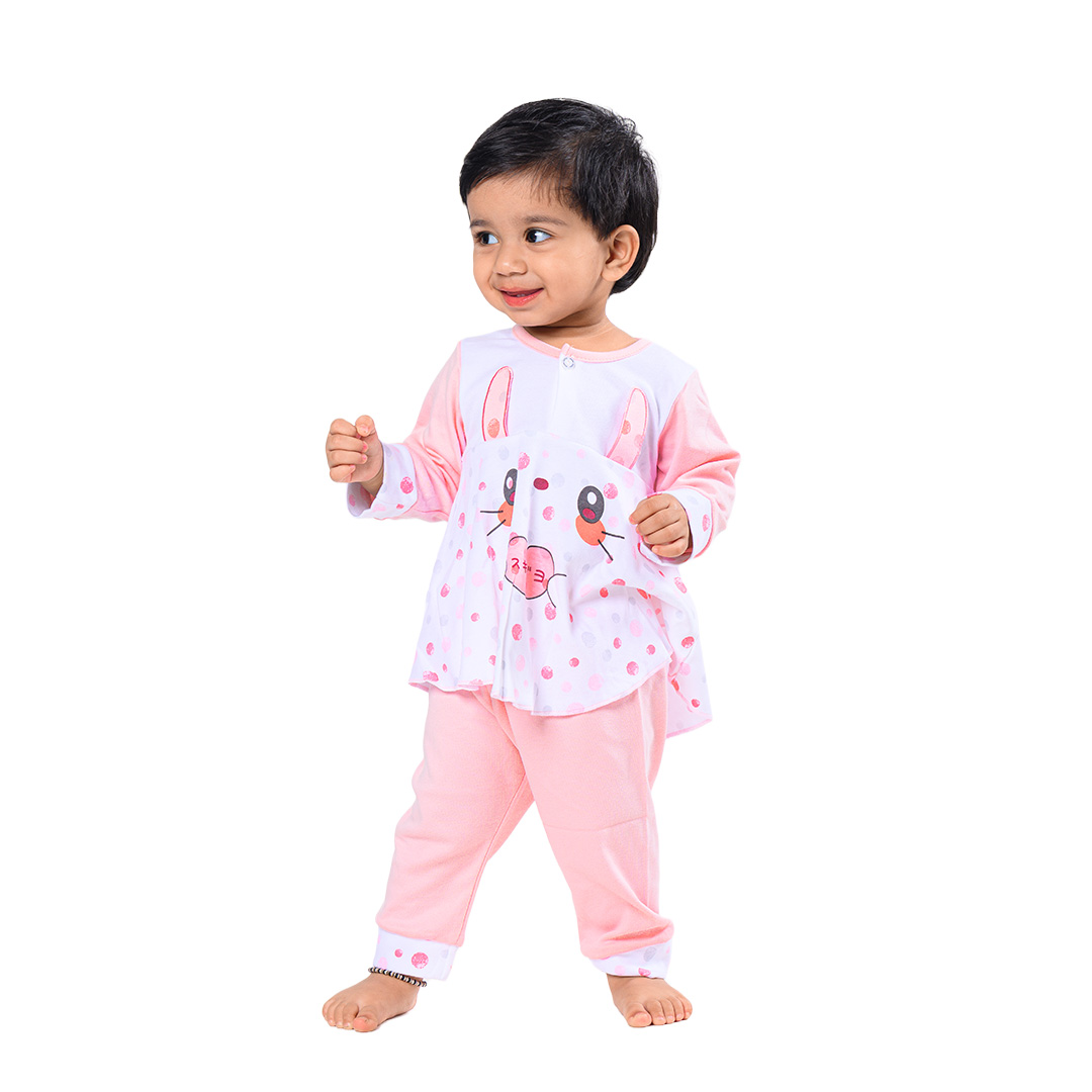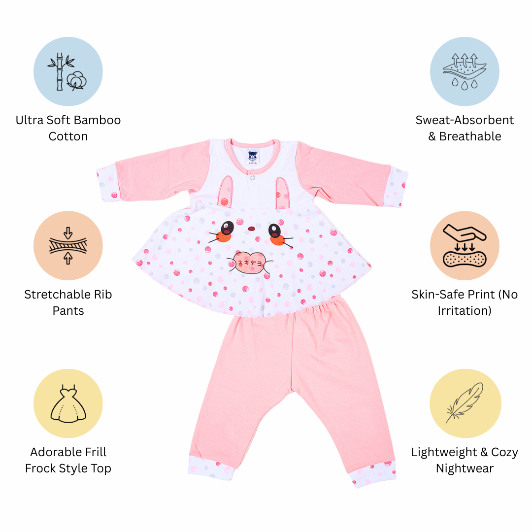 Adorable Frill Top Night Suit Set for Babies – Pink Bunny