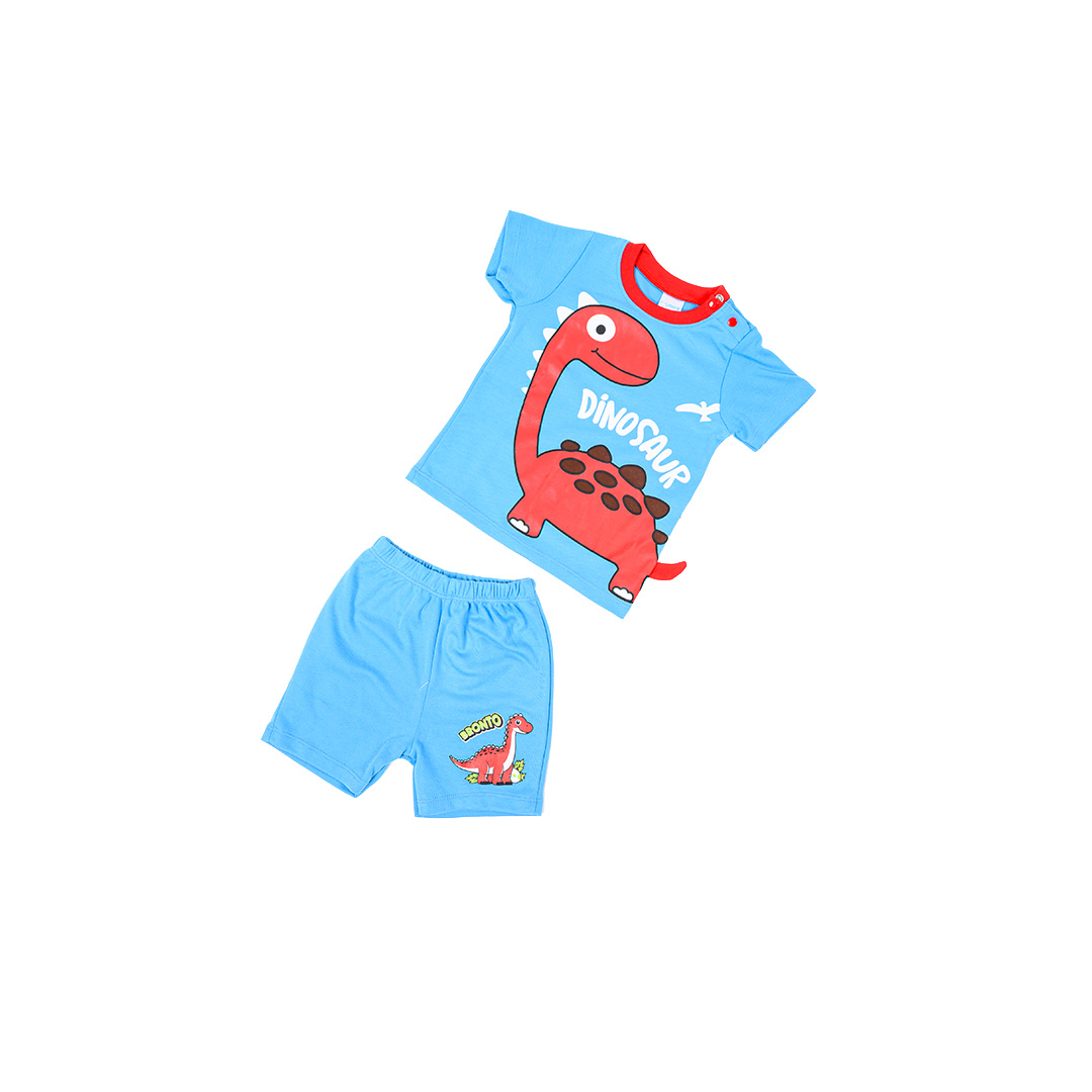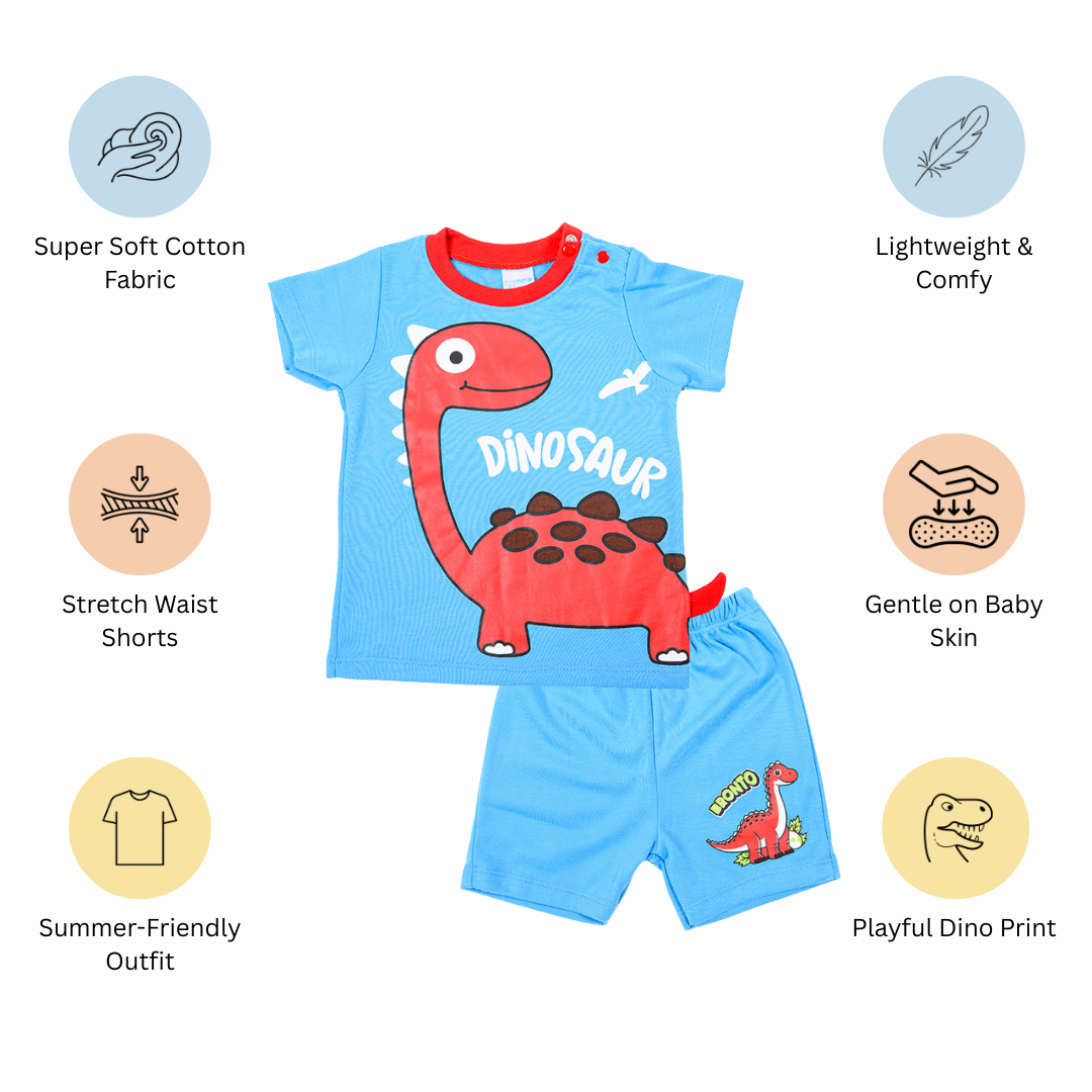 Dinosaur Printed Half Sleeve Top + Shorts Set – Blue & Red