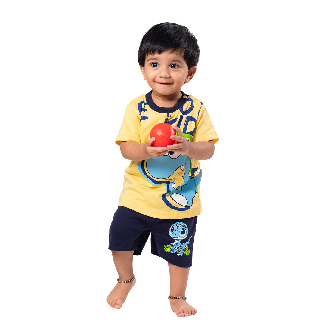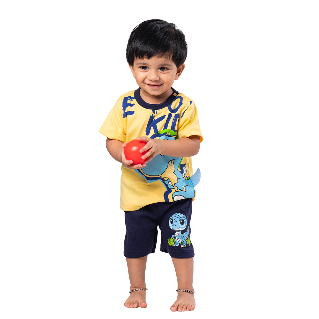 Dinosaur Printed Half Sleeve Top + Shorts Set – Yellow Navy