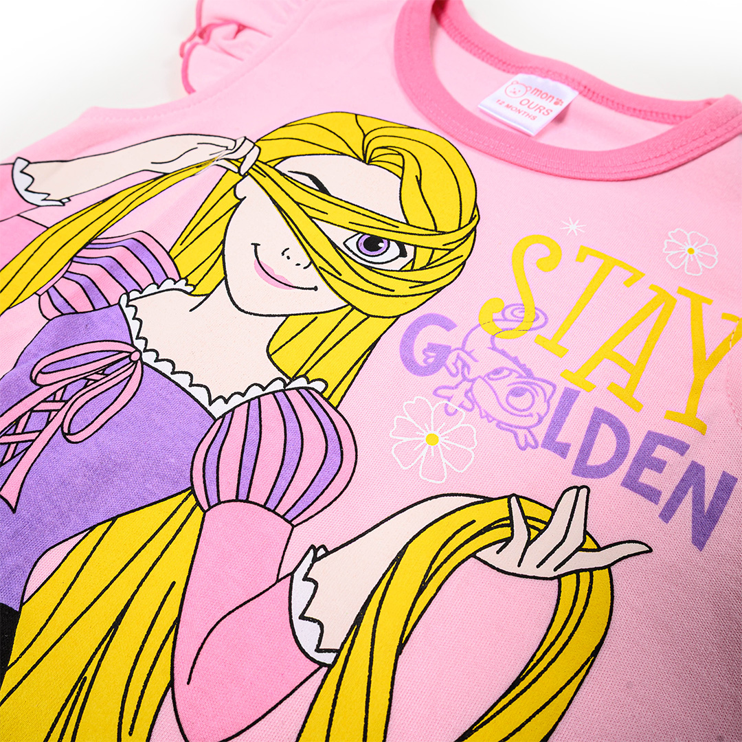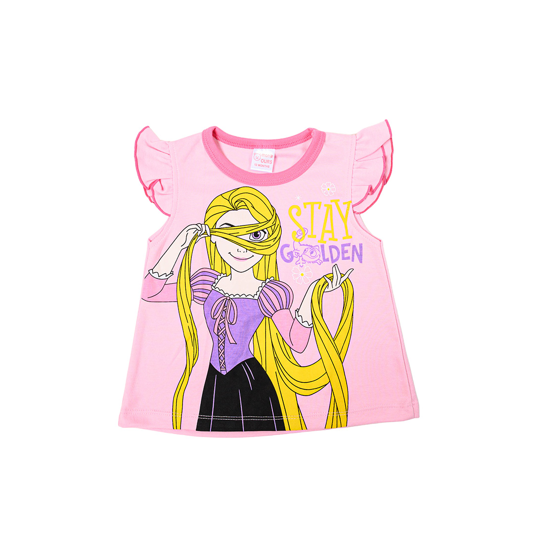 💖 Sleeveless flutter-top with colorful Rapunzel print & “Stay Golden” quote