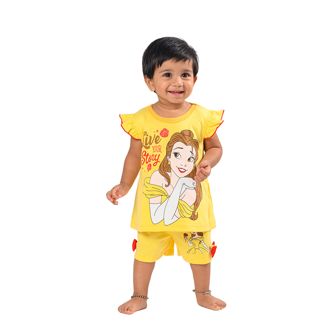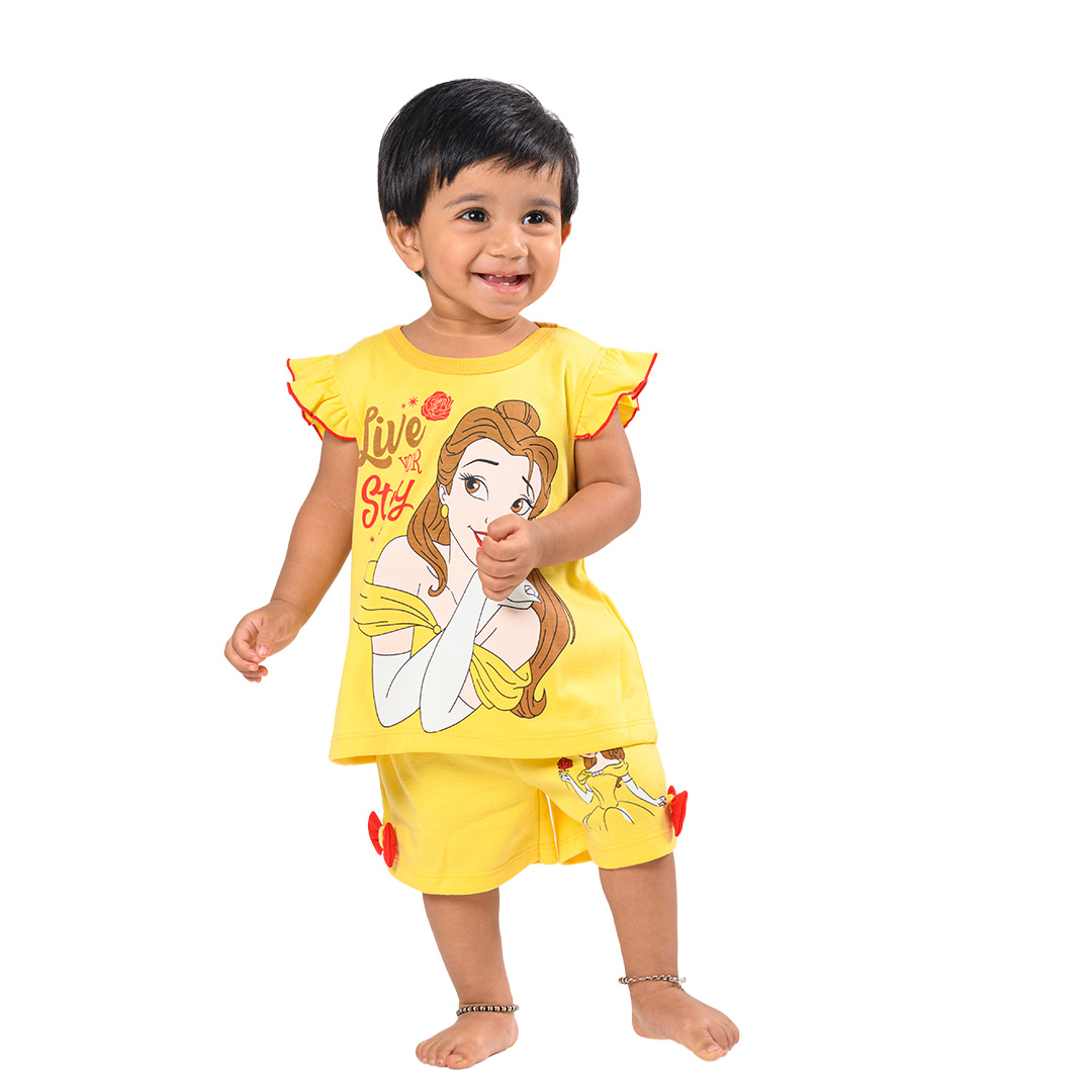Disney Belle Printed Sleeveless Top & Shorts Set – Yellow