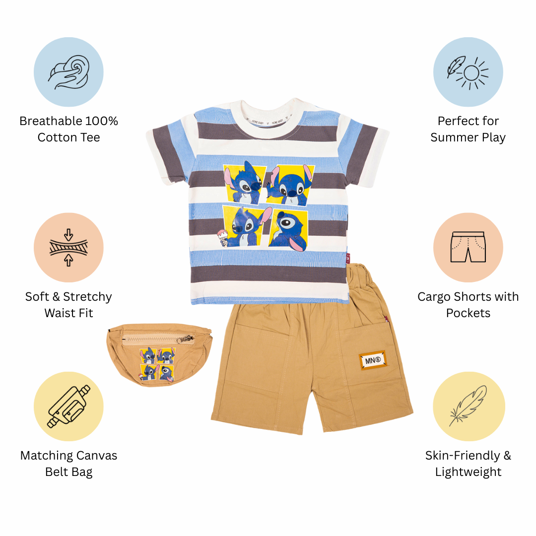 Disney Lilo & Stitch Printed T-Shirt + Cargo Shorts + Matching Fanny Pack