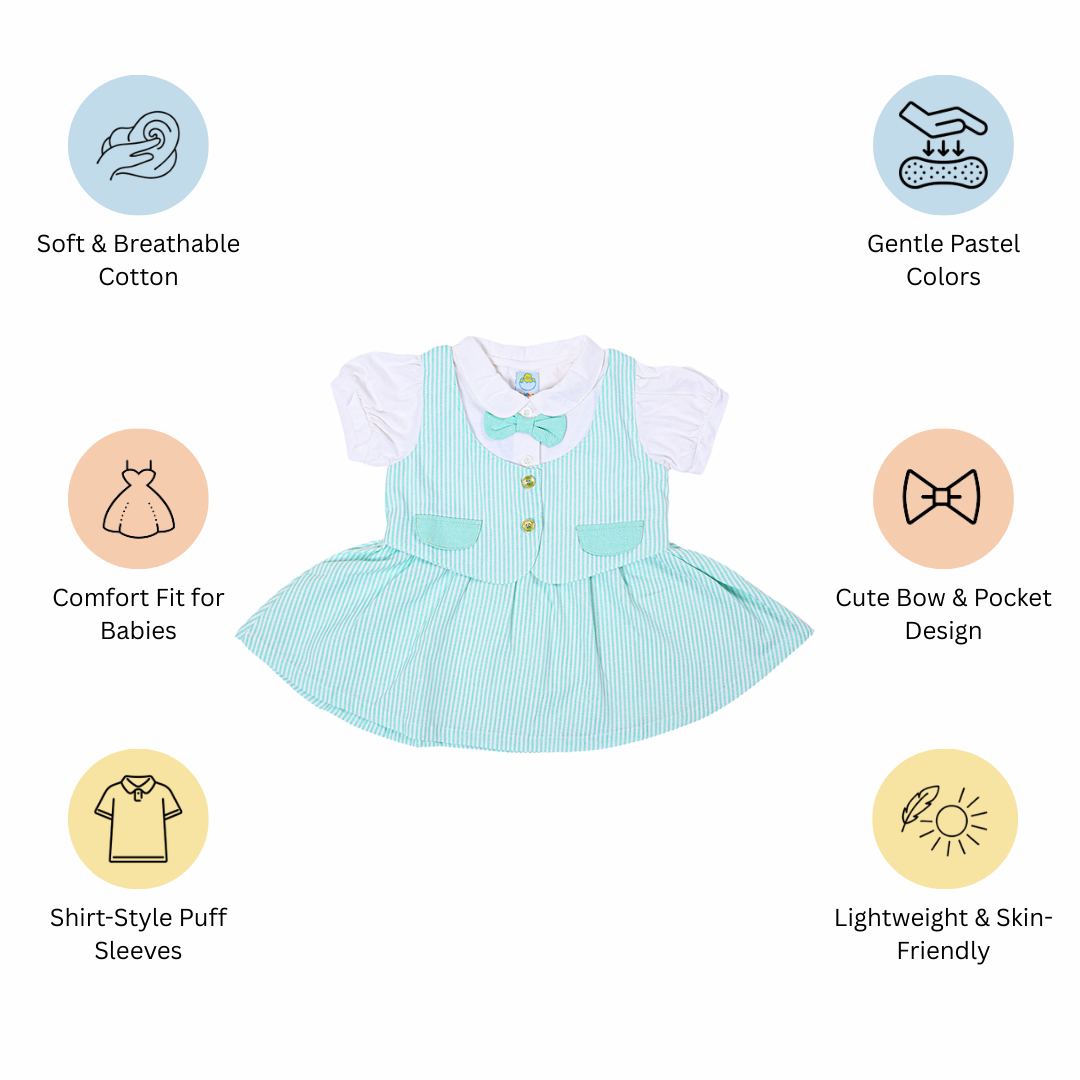 Soft Cotton Dress with Attached Vest & Bow Design – Mint